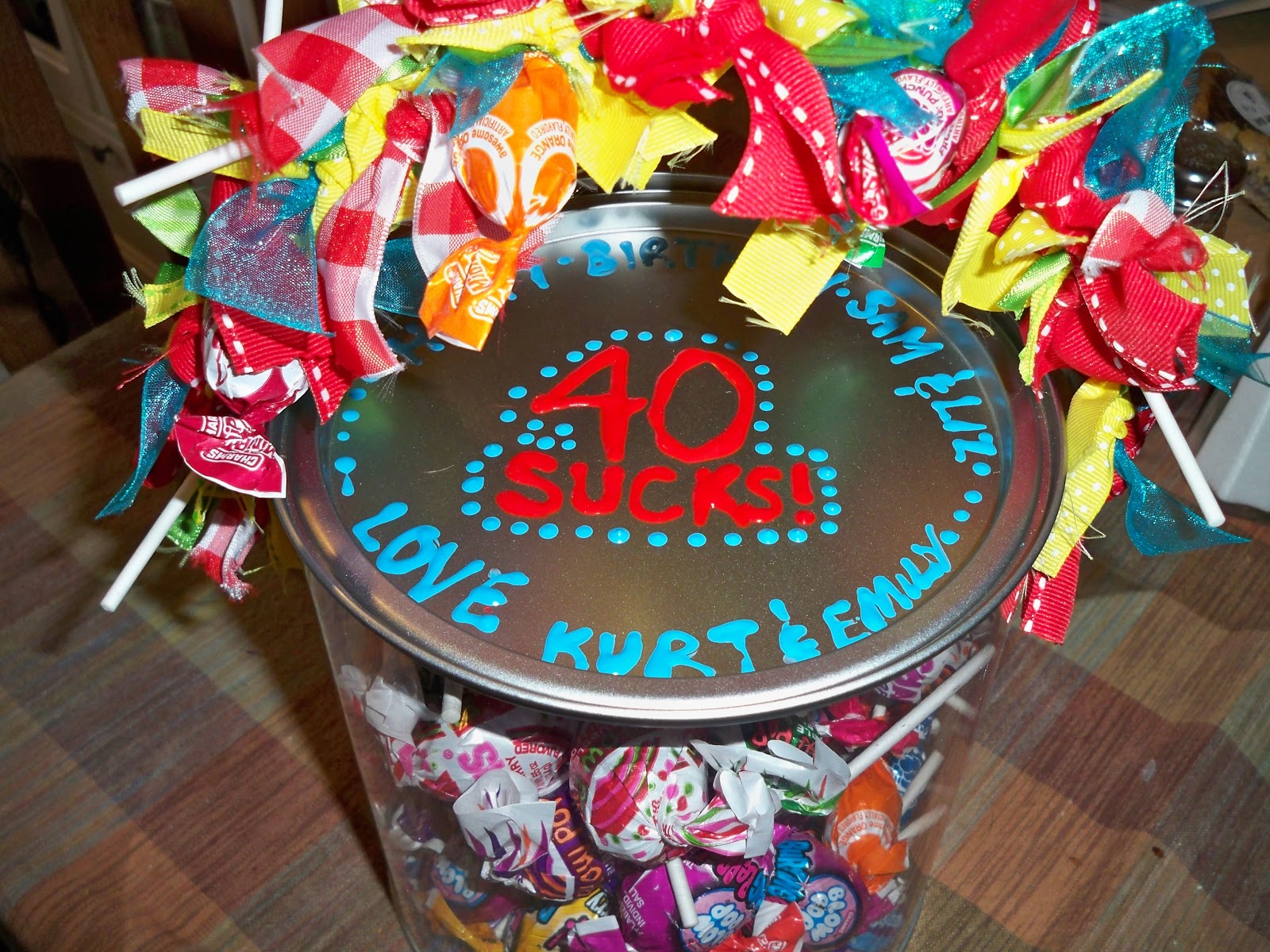 40 (or 30 or whatever! sucks) craft/gift bucket with lollipops/suckers. I used TONS of said scrap ribbon on this projects! Tutorial here@ the old blog!